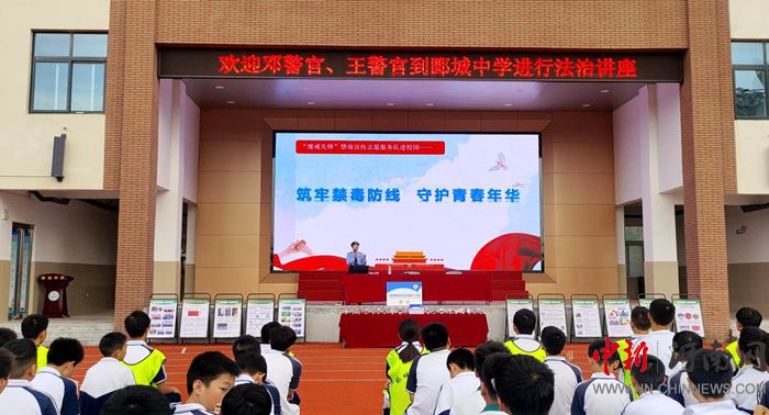 中新河南网9月26日电(任钱坤)为增强学生法治意识,筑牢校园安全防线,9月25日,河南省漯河市郾城中学迎来了一场主题鲜明、生动务实的禁毒法治报告会——“豫戒先锋”禁毒宣传志愿服务队联合郾城区司法局、区教育局、区法学会,共同走进郾中校园,为全校师生带来法治“开学第一课”。