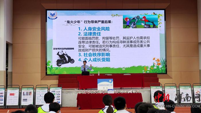 交通安全法制教育环节,一段“鬼火少年”违规飙车引发事故的视频,让现场唏嘘。王妙丽结合交通法规,详解违规骑行面临的法律责任与安全风险,告诫学生摒弃侥幸心理,遵守交通规则。