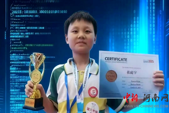 中新河南网10月10日电 在近日圆满落幕的第七届ICode国际青少年编程竞赛全球总决赛中,潢川五小张庭宇同学以其扎实的编程能力与稳定的赛场表现,勇夺全球总决赛铜奖,为学校、为家乡赢得了国际荣誉。