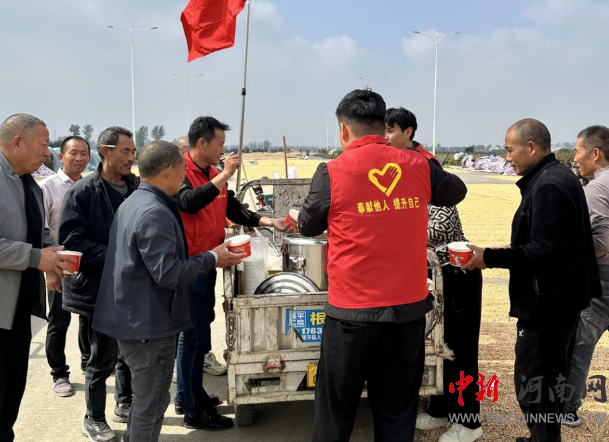 “群众在哪儿,党员就服务到哪儿。”赵桥村党支部组建“金穗先锋”党员志愿服务队,分片包干、轮班作业。在晾晒现场,身着红马甲的党员干部们穿梭在粮堆间,翻晒、装袋、搬运。到了饭点,党员干部们变身“炊事员”,将一份份热菜热饭打包分装,准时送往各晾晒点。正在翻晒玉米的村民感慨道:“从收割到晾晒,再到吃上热乎饭,全靠党员干部帮忙!”