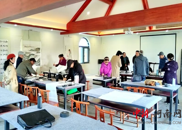中新河南网10月24日电 秋色正好,笔墨生辉。10月22日,潢川县老年书画研究会近40名会员在会长吴蕴华的带领下,先后走进仁和镇仁凌山庄与光山县司马光文化艺术中心,开展为期一天的艺采风、笔会交流与专题观展活动。本次活动以“书画传情·文化同行”为主题,通过实地走访、创作互动与艺术观摩,展现了老年书画爱好者深厚的文化情怀与积极的创作热情。