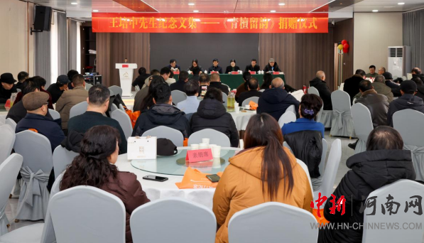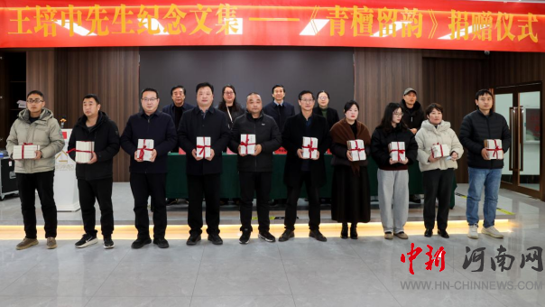 中新河南网1月12日电 一册文集,满含无尽追思;一脉书香,延续精神传承。2026年元月10日上午,王培中先生纪念文集《青檀留韵》捐赠仪式在鲁山县城花园四季酒店隆重举行。此次活动由鲁山县文联、县炎黄文化研究会、县作家协会联合主办,县关工委执行主任、县炎黄文化研究会会长邢春瑜,平顶山市图书馆副馆长王宝郑,平顶山市委党校教授周海清,县文联党组书记、主席王慧烁,中国作协会员、县文联原党组书记、主席郭伟宁,中国作协会员、县炎黄文化研究会执行会长袁占才,中国作协会员、平顶山市作协副主席、县作协主席叶剑秀等文化界人士、教育工作者、亲友代表及媒体记者八十余人齐聚一堂,共同见证这部凝聚深情与敬意的文集正式启程,走进图书馆、档案馆与校园,成为鲁山文化记忆中不朽的篇章。