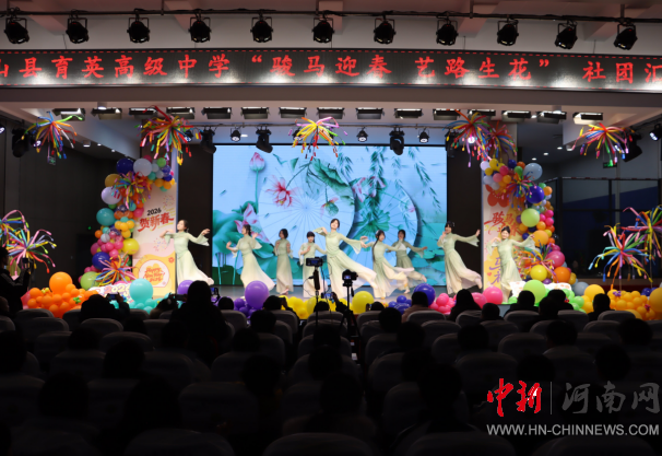 中新河南网1月28日电 2026年1月27日晚,鲁山县育英高级中学报告厅内灯火辉煌、霓虹闪烁,洋溢着浓浓的年味与青春气息。以“骏马迎春·艺路生花”为主题的社团汇演在此隆重举行。来自高一、高二、高三三个年级的学子们齐聚一堂,用21个风格各异、精彩纷呈的节目,献上一场融合传统韵味与时代脉搏的艺术盛宴。