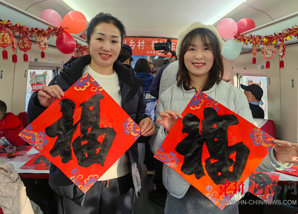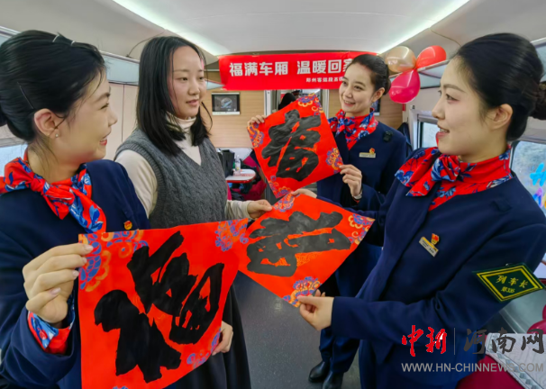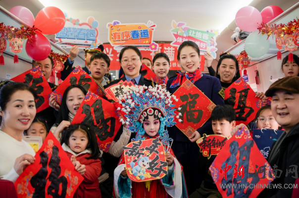 中新河南网2月2日电 2026年2月2日,郑州客运段高铁四队担当的郑州东至厦门G2045次列车上,一场精彩的“振兴乡村,福满车厢”主题活动温暖开启。在车厢内,书法家挥毫泼墨送“福”字,豫剧《花木兰》乡音婉转回荡,车厢洋溢着浓浓的年味。