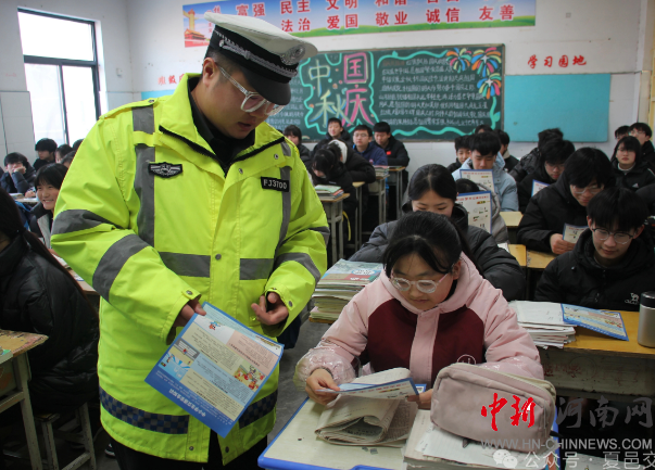 中新河南网2月5日电(刁玉磊 周学峰)夏邑县公安局交通管理大队针对寒假将至,为提高中小学生的交通安全意识,保障“春节”假期出行平安,抽出专门警力,深入辖区中小学校开展“离校一课”安全宣讲。