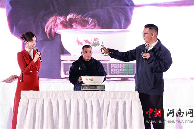 “公蟹7.7两!母蟹7两!”东辰生态养殖部工作人员将刚捕捞上来的东山大闸蟹现场称重,其出色的“个头”与品质引得现场观众纷纷拿起手机或相机拍摄记录。活动现场还设置了捆蟹表演、蟹农故事分享等环节,让市民游客沉浸式体验金秋蟹宴的独特魅力,深入了解大闸蟹背后的故事。