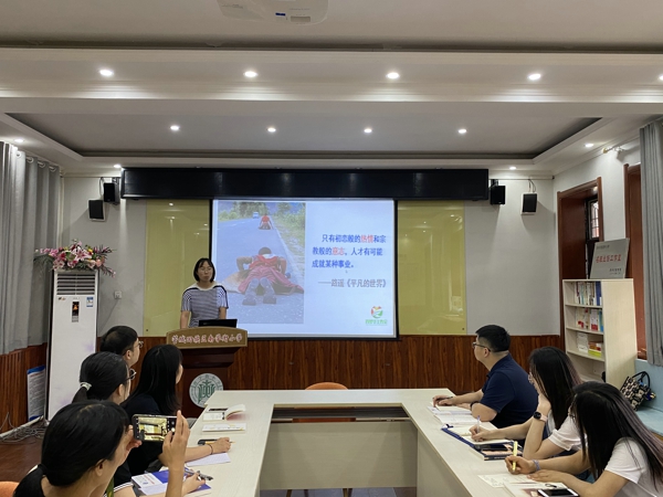 紧接着,工作室助理张荷老师向大家分享了新时期班主任的能力修炼,她从我们班主任遇到的一个个问题和困惑出发,向老师们介绍了一些方法和技巧,她强调我们要想成为一个轻松地、合格的班主任首先要进行修心、修业、修术,即有正确地、健康地心态、精湛的专业能力、有效的管理技巧。张荷老师还向大家分享了一些与家长和孩子沟通的一些启发性的语言,老师们听得非常认真并且及时的记录下来。“听了张荷老师的分享,我知道了我接下来要努力的方向了。”工作室成员袁文霞激动地说道。