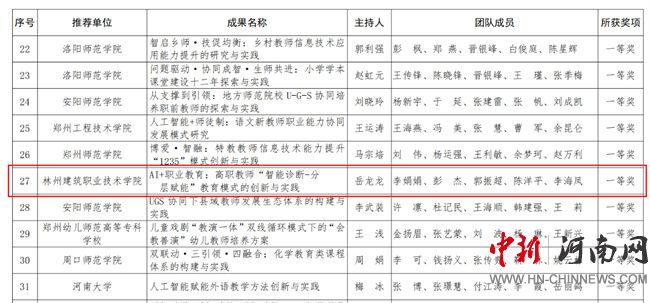 中新河南网9月23日电 近日,河南省教育厅下发了《关于公布2025年河南省教师教育教学成果奖获奖项目的通知》(教师〔2025〕176号),林州建筑职业技术学院智能建造学院岳龙龙团队申报的《AI+职业教育:高职教师“智能诊断-分层赋能”教育模式的创新与实践》成果,凭借突破性的教学改革理念与显著的实践成效荣获一等奖,这一成果彰显了林州建院在推动教师教育教学改革、深化人工智能与教育融合方面的显著成效。