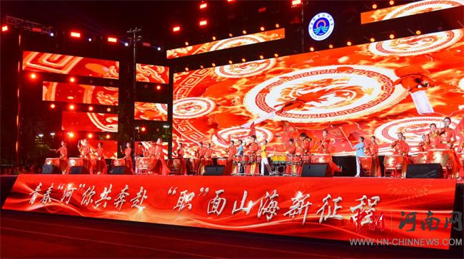 中新河南网9月27日电(金籽硕) 金秋送爽,星光璀璨。9月25日晚,河南职业技术学院“青春‘河’你共奔赴,‘职’面山海新征程”2025年迎新生庆国庆汇演在田径运动场隆重举行。校领导夏新颜、田华、肖珑、李玉峰、盛兴文、鲁冬、朱永宽出席活动。学校各单位相关负责人、全体新生辅导员及7300余名2025级新生共同观看演出。