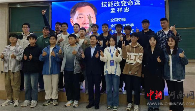 “从咱学校毕业后,我在1992年拿到了“企业级技师”的荣誉,1995年拿到了“国家级技师”的荣誉,直到2000年,我又拿到了“国家级高级技师”的荣誉。再到后来的“中国质量工匠、首席技师、中原大工匠、牧野大工匠、新乡市劳模、河南省劳模、河南省技术能手、全国技术能手、政府津贴、十四届全国人大代表、中国工会十七大、十八大代表…….春天耕种,秋天收成。现在我已经到了秋收的季节。”孟祥忠亲切的和大家聊起了自己的成长之路。