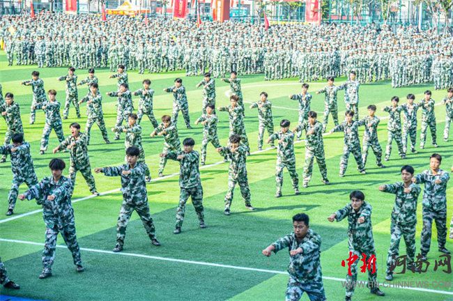 军训成果汇演分为分列式、数字方队、男子擒敌拳、女子匕首操和旗语操等五个部分。12个二级学院方队和男女劈枪方队阵容协调统一、口号嘹亮有力,他们依次走过主席台接受检阅。2400人的数字合唱方阵以身为笔,以行为墨,在军训场上精准呈现出壮丽的数字画卷和震撼人心的军歌声响;铁骨铮铮贯长松的男子擒敌拳;巾帼锋芒胜寒霜的女子匕首操;旗风猎猎作雷声的千人旗语操,多方位展示了2025级新生团结、拼搏、奋进的良好风貌,赢得全校师生的阵阵掌声。