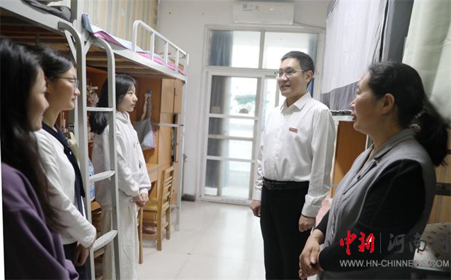 中新河南网10月5日电(郑宝林) 金秋送爽,双节同庆。10月3日上午,河南职业技术学院党委书记厉励带队深入校园一线,看望慰问国庆节、中秋节假期期间坚守岗位的教职工,向大家致以节日的问候和诚挚的感谢,并就假期值班值守、留校师生服务保障、校园安全等各项工作进行细致检查,确保全校师生度过一个安全、祥和、有序的假期。校党委副书记、工会主席田华,校党委委员、纪委书记盛兴文,以及党政办公室、纪委办公室、党委学生工作部、党委保卫工作部、后勤管理处、国际合作交流处、马克思主义学院、图书馆等单位负责人参加检查。