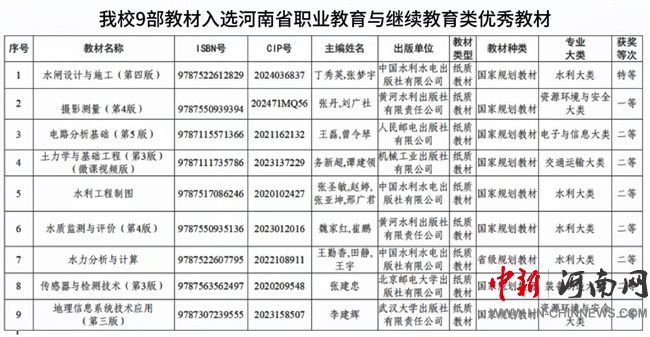 黄河水利职业技术大学9部教材获河南省职业教育优秀教材