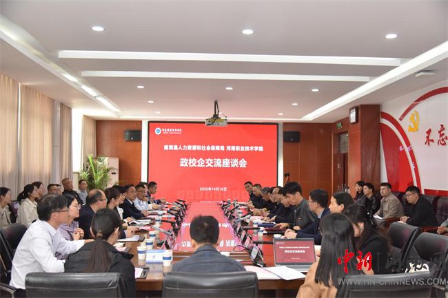 中新河南网10月20日电(杨媛媛) 10月15日下午,江苏省建湖县人力资源和社会保障局党委书记、局长葛步中率县人社局、经济开发区、近湖街道等单位负责人及15家优质企业代表来河南职业技术学院开展校地合作交流座谈。校党委委员、副校长鲁冬出席并致辞,发展规划处、教务处、材料工程学院等相关职能部门及二级学院负责人、就业专干参会。