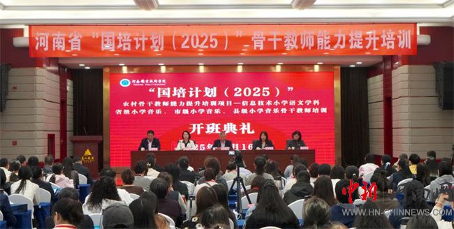 中新河南网10月20日电(蔡晶晶 霍本龙) 10月16日上午,由河南职业技术学院承办的“国培计划(2025)”省级小学音乐、市级小学音乐、县级小学音乐及信息技术小学语文学科骨干教师能力提升培训班,在嵩山饭店大礼堂开班。校党委委员、副校长李玉峰出席典礼并致辞,现代信息技术学院、音乐学院、继续教育学院相关负责人,以及来自全省18个地市的250名骨干教师参加典礼。