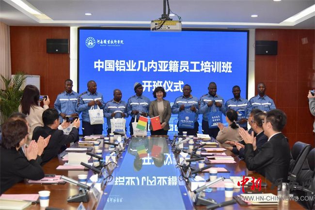 中新河南网10月24日电(闫玉洁) 10月21日上午,河南职业技术学院2025年中国铝业几内亚籍员工培训项目开班仪式在勤业楼332会议室举行。校党委书记厉励作开班致辞,并为学员配发校牌。中国铝业股份有限公司人力资源部副总经理苏明明,有色金属工业人才中心主任助理、教育培训处处长赵丽霞等行业企业嘉宾应邀出席。校党委委员、副校长肖珑出席并向几内亚学员赠送学习礼包,表达美好的祝愿。国际合作交流处、材料工程学院、国际教育学院等相关部门负责同志和授课教师代表以及来自几内亚的全体学员参加仪式。开班仪式由校党委委员、副校长鲁冬主持。