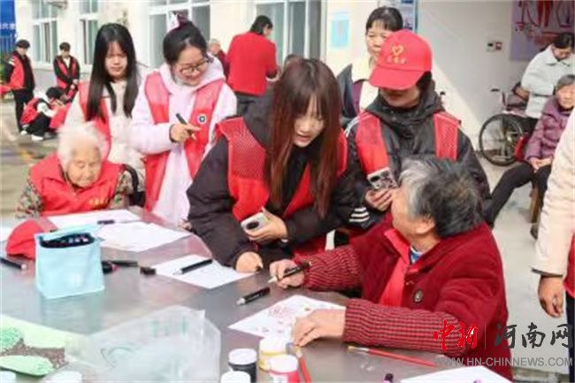 学子们提前精心编排好舞蹈、歌唱表演等节目,制作了精美的手工绘画,一到养老院便忙碌起来。大家分工明确,有的主动陪老人坐在庭院里唠家常,悉心倾听老人们讲述过去的故事,耐心询问他们的饮食起居与健康状况;有的拿起扫帚、抹布,细致地打扫养老院的卫生,擦拭门窗与扶手,让老人的居住环境更加整洁舒适;擅长文艺表演的同学,现场演唱了《最炫民族风》《别怕变老》等歌曲,悠扬的歌声引得老人们跟着节奏轻轻哼唱,不少老人还接过话筒,用略带沙哑却饱含热情的嗓音加入合唱,脸上洋溢着幸福的笑容;擅长舞蹈的同学,为大家表演了《斗地主》《桃花朵朵开》《谁是我的新郎》等舞蹈,节奏明快的舞蹈中,欢笑声、音乐声与掌声交织在一起,汇成了一曲温馨和谐的重阳赞歌……