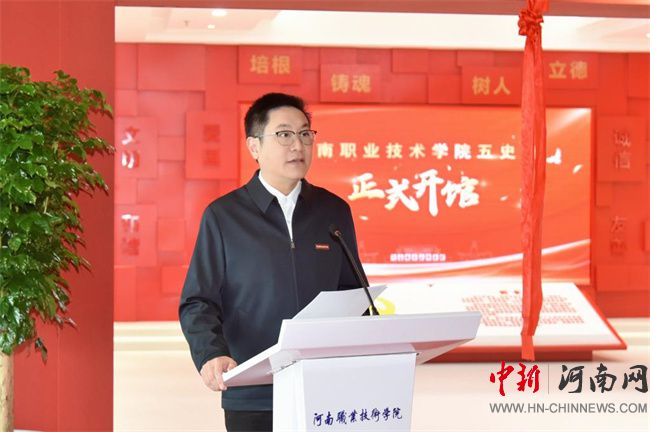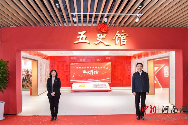 中新河南网10月30日电(胡海涵) 10月29日上午,河南职业技术学院在图书馆隆重举行“五史馆”开馆仪式。校党委书记厉励,校党委副书记、校长夏新颜共同为“五史馆”揭牌。在郑校领导、各单位党政负责人、师生代表及学校马院共建结对院校思政课教师代表一同见证开馆。校党委副书记、工会主席田华主持开馆仪式。