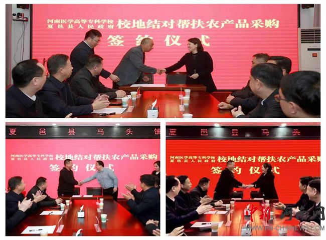会上,学校相关部门负责人分别与马头镇政府、夏邑县鸿强中药材合作社签订科技帮扶协议,与当地商户签订农产品采购协议。