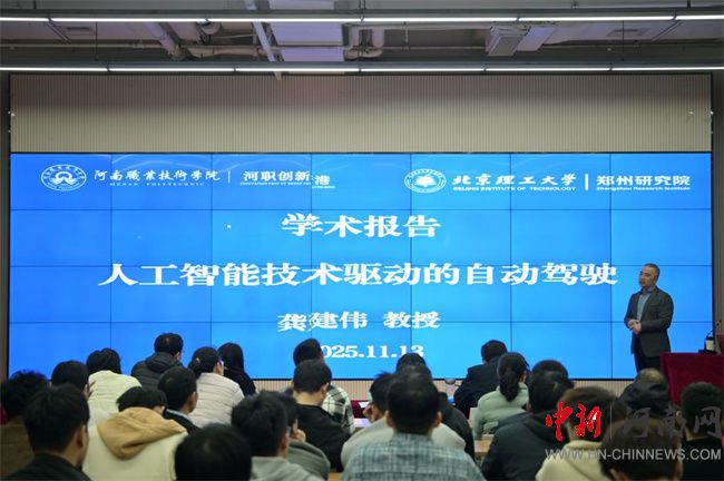 中新河南网11月15日电(戴磊) 11月13日下午,河南职业技术学院在河职创新港519学术报告厅举办“人工智能技术驱动的自动驾驶”学术报告会。北京理工大学机械与车辆学院教授、博士生导师龚建伟围绕“AI+自动驾驶”的技术演进、关键算法与产业落地作专题分享。学校高层次人才、汽车与交通学院师生代表110余人参会。