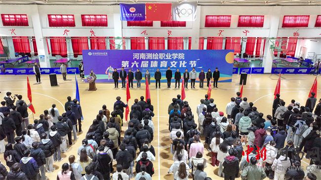 中新河南网11月21日电(金润东/文 郑嵘淇、茹奕瑞、冯赛一、韩智俊、刘光灿/图) 11月19日下午,河南测绘职业学院第六届体育文化节开幕式在体育学院四楼综合训练馆隆重举行。校党委书记张树岭、纪委书记郭书克出席活动。开幕式由体育学院副书记许佳主持。