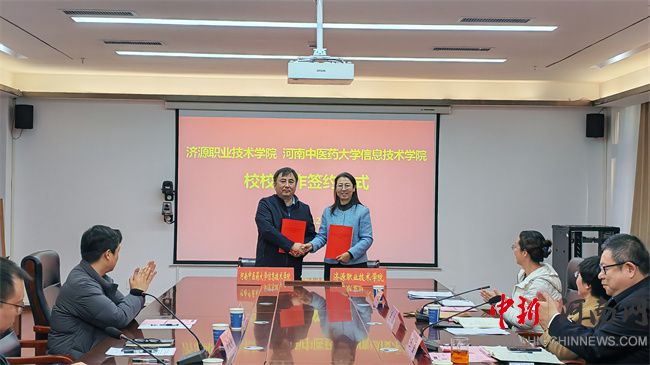 河南中医药大学信息技术学院(智能医疗行业学院)党委书记许成刚、科研办主任党豪、智能医学工程专业负责人阮晓龙,以及济源职业技术学院校长王磊、副校长耿俊梅、教务处负责人、人工智能学院教师代表共同参加仪式。签约仪式由学校人工智能学院负责人主持。