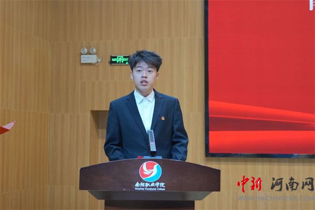 宣讲结束后,团员代表张嘉琦带领全体同学发出青春倡议。他呼吁团员青年筑牢思想防线,成为反诈防骗的“明白人”;坚守行为底线,做防欺凌护平安的“守护者”;积极担当作为,做法治建设的“践行者”。他号召大家携手共筑校园反诈防护网,守护校园净土,为构建平安校园、法治南阳贡献青春力量。