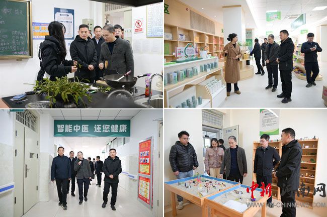 与会领导参观了附属幼儿园、校医院及直播电商展销中心,并深入仲景中医药与健康学院和心理健康教育中心进行实地调研。