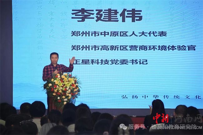 怀着对祖国的敬畏之心和对圣贤的诚敬之心,近千人的会场鸦雀无声,洗耳恭听郑州中原区人大代表、郑州市高新区营商环境体验官、正星科技党委书记李建伟老师的震撼致辞。