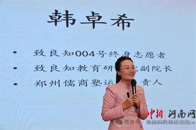 韩卓希副院长分享了《让身边多一位致良知的中国人》。她结合自己在致良知学习前后的变化,用鲜活的实例向大家展示了传统文化的魅力。“婚姻是最好的修行道场”,这是对她现实生活最好的诠释。婚姻不是去改变对方,而是借由对方来修自己,这充分说明了“我是一切的根源,我有无限的可能性”。所以,致良知就是向内求,有问题看自己,让自己保持内心平静;行有不得,反求诸己。要想生活在美好的社会里,就要影响身边人,让身边多一位致良知的中国人。
