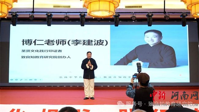 星光璀璨的王老刚走下舞台,致良知研究院创办人博仁老师便带着光走上舞台,带来《成圣成贤 可学而至》的主题分享。
