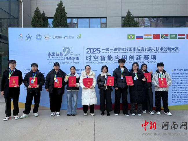 中新河南网12月11日电 12月7日,2025“一带一路”暨金砖国家技能发展与技术创新大赛时空智能应用创新赛项在石家庄落下帷幕。黄河水利职业技术大学测绘工程学院派出的2支代表队在此次大赛中表现出色,最终荣获高职组1金1铜的优异成绩,学校也获得“最佳组织奖”,陈旭、王双美两位指导老师获评“优秀指导老师”。