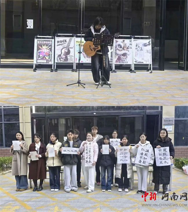 中新河南网12月18日电 12月16日中午,由汝州职业技术学院校团委主办的“社团风采集中展演”在学生餐厅前广场精彩上演,醒狮社、合唱团、舞蹈社、吉他社、书法社五大精品社团联袂登台,为师生带来一场充满青春气息文化盛宴。校党委书记翟会杰、校长刘延宾等领导到场观看,对本次活动给予高度评价。