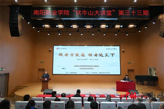 本期“伏牛山大讲堂”是南阳职业学院深入学习贯彻党的二十届四中全会精神的一项具体行动,是学校将诚信文化培育有机融入“三全育人”格局、扎实推进校园精神文明建设的创新举措。南阳职业学院将以此次活动为新的起点,持续深化对全会精神的学习贯彻,不断丰富诚信教育载体,通过主题教育活动、文化实践、榜样引领等多种形式,将诚信教育贯穿人才培养全过程,着力构建校园诚信建设长效机制,教育引导全校师生自觉成为诚信精神的坚定践行者、积极传播者和忠实守护者,让诚信之风吹遍校园,为培养德智体美劳全面发展、担当民族复兴大任的高技能人才注入强大精神动力。(南阳职业学院供稿)