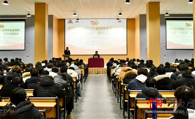 中新河南网1月5日电(文/宋桂平) 为深入学习贯彻党的二十届四中全会精神,引导广大师生深刻领会“十五五”规划的时代内涵与战略部署,12月30日,河南测绘职业学院校长张凌杰以“深学笃行党的二十届四中全会精神,勇担‘十五五’现代化新使命”为主题,在报告厅为全体师生讲授了一堂内容丰富、思想深刻的思政大课。