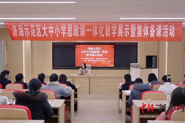 据了解,济源示范区大中小学思政课一体化虚拟教研室成立以后,开展了一系列活动,探索济源全域思政课纵向贯通的体制机制、方式方法,取得了一些成效。2025年12月《教育时报》以“协同·融合·创新——奏响一体化育人乐章”专版报道了思政课一体化育人的特色,先后在2024年全省“大练兵 大比武 大展示”活动和优秀课例评选中分别获得一等奖。此次活动的举办,为济源示范区大中小学思政课教师跨学段交流的桥梁,促进了优质教学资源共享与教学经验互鉴,进一步明晰了思政课一体化建设的实践路径。与会教师纷纷表示,将把所学所悟融入日常教学,持续深化思政课改革创新,真正实现从感知、意识、认同到担当的育人目标,为培养担当民族复兴大任的时代新人筑牢思想根基。
