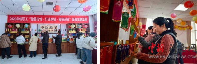 活动现场年味十足,大红灯笼、新春对联点缀其间,暖意融融。本次活动设置三大特色区域,为教职工带来了丰富多样的民俗体验。在春联书写区,教职工们或挥毫泼墨,或相互切磋,“马到成功”“龙马精神”“阖家幸福”等吉祥话语跃然纸上,一笔一划间饱含对新春的期许和对生活的热爱,一幅幅饱含墨香的春联,既是传统文化的传承,也是最真挚的新春祝福。