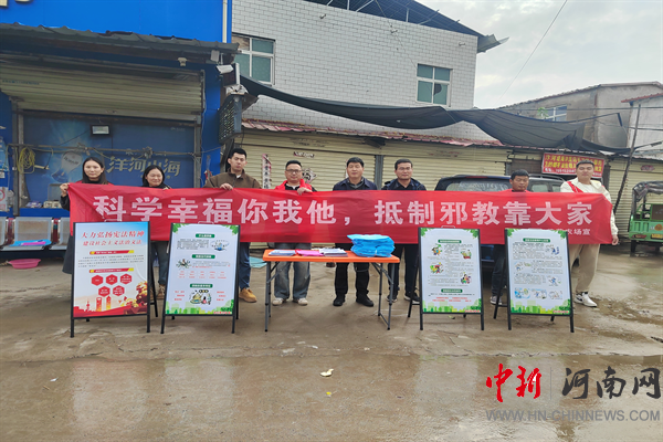 杏花营农场综治办在汴河堤集市开展反邪教宣传,织密基层平安防护网