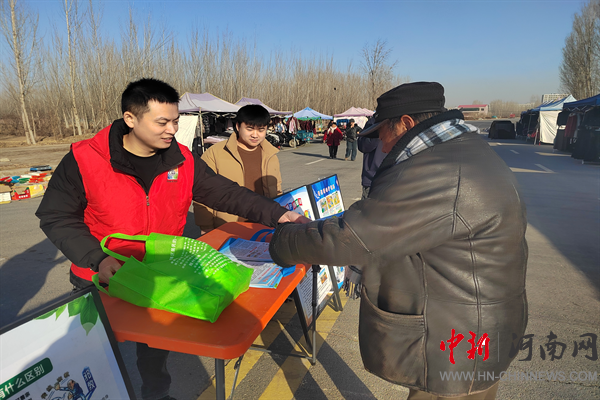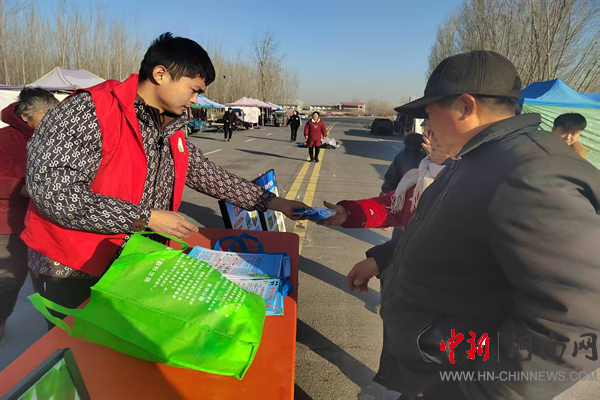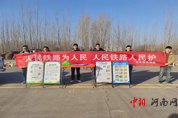 中新河南网1月13日电:为筑牢铁路沿线安全防线,提升群众知路爱路护路意识,1 月 13 日, 开封市示范区杏花营农场综治中心在农场集市开展铁路护路集中宣传活动。