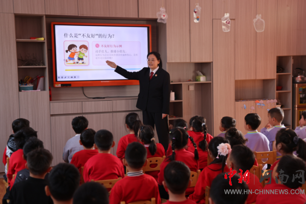 中新河南网4月2日电:春意盎然播种希望,法治春风浸润课堂。为深入推进青少年法治教育工作,切实筑牢校园安全法治防线,用心守护未成年人健康成长,近日,开封市鼓楼区人民法院组织干警分赴全区各对接中小学及幼儿园,开展“法治进校园”系列专题普法宣传活动,针对不同年龄段未成年人的认知特点,量身定制普法内容,以司法力量为孩子们的成长之路保驾护航。