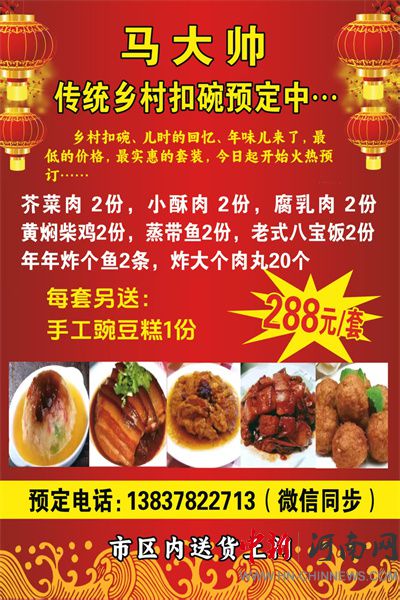 欢乐中国年 马大帅传统扣碗接受预订