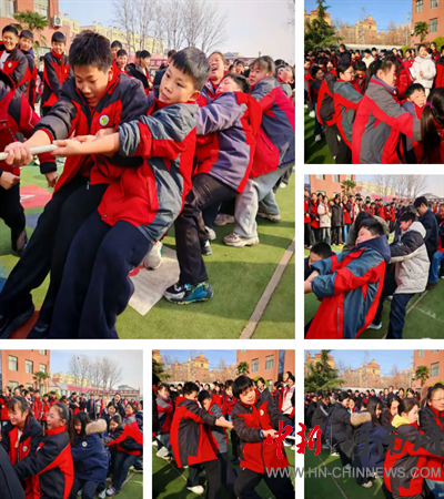 中新河南网12月28日电:为丰富校园文体生活,增强学生的团队协作意识与集体荣誉感,12月24--26,开封市祥符区阳光小学于12月24--26日三天,利用大课间活动举行了一至六年级拔河比赛。
