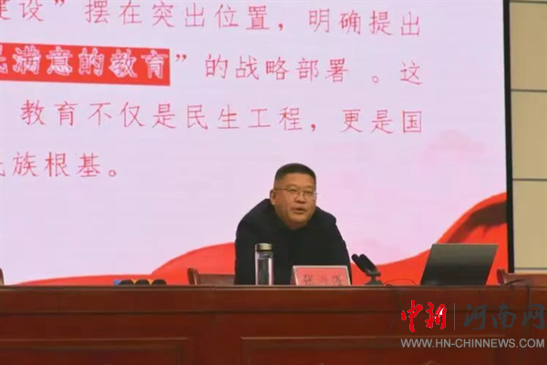 随后,张局长紧密结合祥符教育发展实际与四高办学特色,深入剖析了全会精神与学校办学、学生成长的紧密关联。他强调,全会提出“实施新时代立德树人工程”,这与高中教育“为党育人、为国育才”的根本任务高度契合,祥符区四高始终坚守立德树人初心,深耕课堂教学、厚植家国情怀、培育综合素养,正是对全会精神的生动践行;他回顾了学校尤其是新校区建设过程中不平凡的奋斗历程,明确表示了区委、区政府坚持教育优先发展、全力支持学校建设的坚定决心,高度肯定了祥符区四高学校领导班子和教职工的辛勤付出。