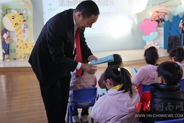 中新河南网11月22日电:为筑牢校园安全防线,呵护幼儿健康成长,11月21日,开封市鼓楼区人民法院执行局副局长王信作为法治副校长走进馨悦幼儿园,开展以“与法‘童’行 安全成长”为主题的普法宣传活动,用生动有趣的方式为孩子们送上了一堂干货满满的法治安全启蒙课。