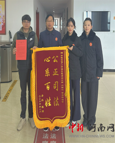 中新河南网3月3日电:“我家房产问题历经20年,始终依靠自身力量无法解决……是人民法院秉持公平正义,依法履职尽责,最终帮我彻底解决了这桩搁置多年的难题!”近日,开封城乡一体化示范区人民法院收到一封情真意切的感谢信。寄信人李某在信中,用最朴实的语言向该院及韩立新法官、闫明明书记员、曹圣晗书记员表达了最诚挚的谢意,并为韩立新法官团队送上锦旗。